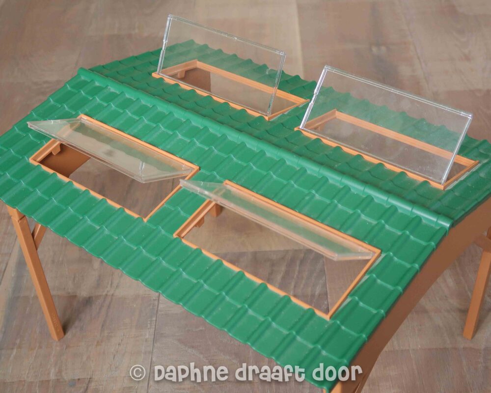 Tweedehands Schleich overkapping voor een rijbak of paddock. De ramen kunnen open en dicht. Niet los in de winkels te koop én uit de collectie, dus super handig als je graag een extra overkapping wil voor je manege!
