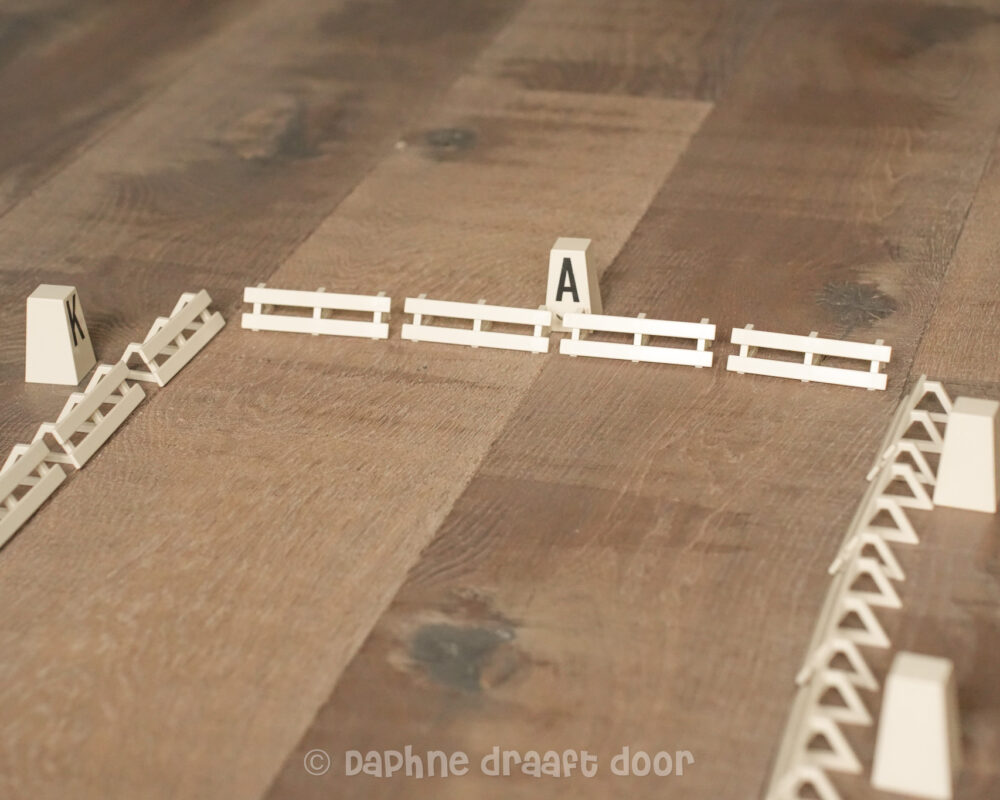 Tweedehands wedstrijdbaan van Schleich. De baan heeft grote bakletters zoals een echte rijbak en 22 hekjes. Origineel van Schleich en uit de collectie!
