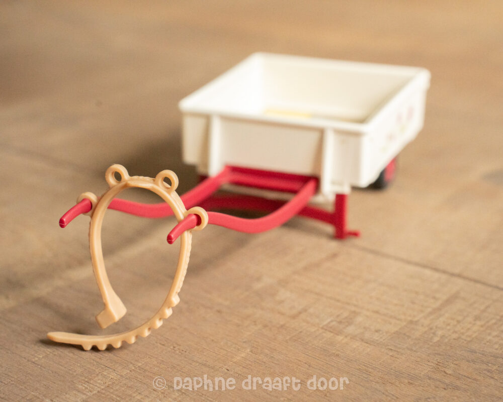 Tweedehands trailer voor Schleich paarden. In goede staat en verkrijgbaar in de variant met en zonder stickers.