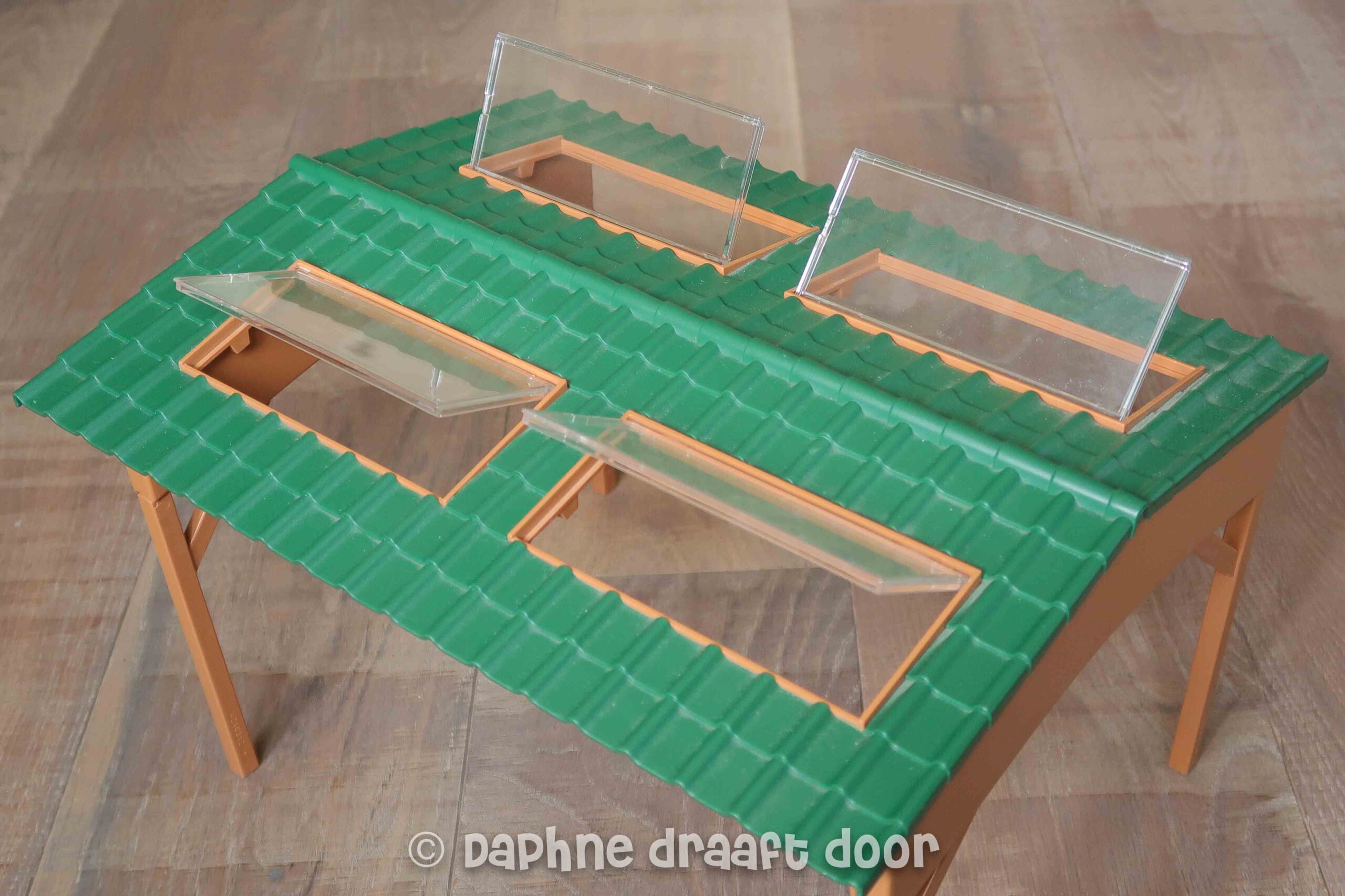 Tweedehands Schleich overkapping voor een rijbak of paddock. De ramen kunnen open en dicht. Niet los in de winkels te koop én uit de collectie, dus super handig als je graag een extra overkapping wil voor je manege!
